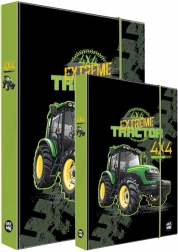 Acest set de cutii pentru caiete în formatele populare A4 și A5 este o parte indispensabilă a rechizitelor școlare. Suprafața laminată de calitate protejează eficient împotriva zgârierilor și umezelii, în timp ce elasticul flexibil păstrează conținutul bine fixat. Motivul stilat cu tractor îi va încânta pe micii pasionați de utilaje și va facilita organizarea materialelor școlare.
