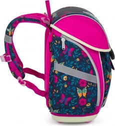 Setul școlar premium light fluture combină un design stilat cu accent pe purtare sănătoasă. Rucsacul ușor, cu spate respirabil căptușit, bretele late căptușite și curea de piept plus bretele de strângere distribuie uniform greutatea. Datorită elementelor reflectorizante, copilul este mai vizibil chiar și în condiții de vizibilitate redusă.