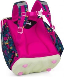 Rucsacul cântărește doar 970 g și este echipat cu spate căptușit respirabil, bretele late căptușite, curea de piept și bretele de strângere. Elementele reflectorizante cresc siguranța pe drumul spre școală.