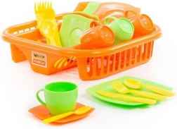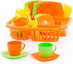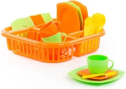 Pachetul conține diferite tipuri de veselă inclusiv farfurii, cești, tacâmuri și, desigur, un uscător, care adaugă fiecărei bucătării o doză bună de realitate. Nu este necesar să ștergeți vesela, este suficient să o lăsați să se usuce, în timp ce copiii se pot bucura de băutura lor preferată.