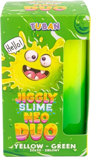 Jiggly Slime Neo Duo este alegerea ideală pentru copii și adulți creativi. Consistența sa unică oferă frământare, întindere și strângere liniștitoare, în timp ce combinația bicoloră galben‑verde creează un efect neon captivant. Slime-ul este grozav pentru trucuri, bule și transfer dintr-o mână în alta.