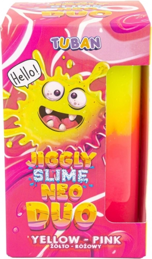 Jiggly Slime Neo Duo este o alegere excelentă pentru copii și adulți care iubesc jucăriile antistres. Datorită formulei unice, slime-ul vibrează distractiv, se întinde frumos și permite crearea de bule și trucuri originale cu slime. Varianta bicolor în galben și roz neon se unește eficient în timpul jocului într-o nuanță impresionantă.