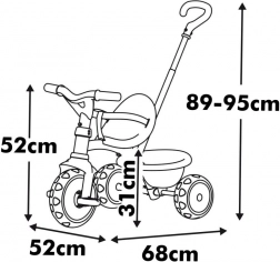 Bara de ghidare reglabilă pe 3 niveluri de înălțime (până la 95 cm) permite conducerea tricicletei în mod confortabil și sigur în timpul învățării primelor plimbări.