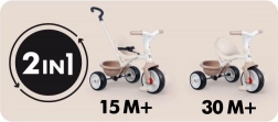 Tricicleta Be Move bej este o alegere excelentă pentru copiii care învață să meargă și își dezvoltă motricitatea. Cadru metalic rezistent pentru stabilitate, iar bara de ghidare ajustabilă și detașabilă cu înălțime de până la 95 cm ușurează părinților conducerea și controlul plimbării.