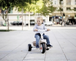 Pentru siguranță și confort, tricicleta este echipată cu centură de siguranță, pedale antiderapante cu posibilitate de blocare a pedalării și scaun ergonomic reglabil în 2 poziții. Rotițele silențioase sunt ideale atât în oraș, cât și în parc, iar coșulețul rabatabil din plastic oferă spațiu pentru jucării și obiecte mici.