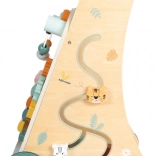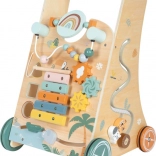 Porniți într-o aventură safari cu acest premergător pentru copii, care are trei laturi pline de activități cu tematică safari. Cei mici se vor bucura să interacționeze cu elefantul, crocodilul, tucanul, leul, tigrul, zebra și prietenii lor. Xilofonul din lemn cu cinci clape oferă stimulare acustică, în timp ce elementele glisante și labirintul cu mărgele ajută la dezvoltarea motricității fine.
