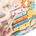 Datorită xilofonului din lemn, roților dințate și labirintului cu mărgele, copilul dvs. se va distra și își va dezvolta în același timp motricitatea fină.