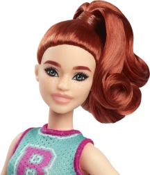 Păpușa Barbie prezentată are păr roșcat într-o coadă laterală și prin ținuta ei sport-fresh inspiră explorarea tendințelor modei. Poartă un tricou turcoaz cu un mare 'B' și o fustă plisată mov drăguță, completate de adidași albi și o brățară roz.