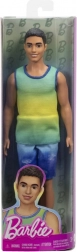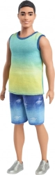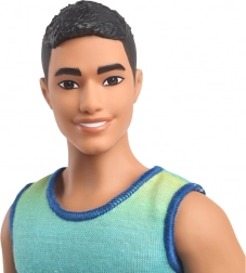 Păpușa Ken are o siluetă largă, îmbrăcată într-un top ombre care trece de la albastru la verde, ideală pentru toate personalitățile și ocaziile. Blugii scurți distruși și adidașii argintii completează aspectul său universal și sofisticat, fie că este vorba de a se întâlni cu prietenii sau de a se juca pe plajă.