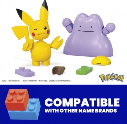 - 2 figurine de asamblat (Pikachu, Ditto), 2 Poké Ball-uri, piese de construcție