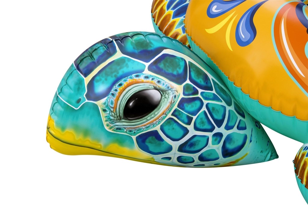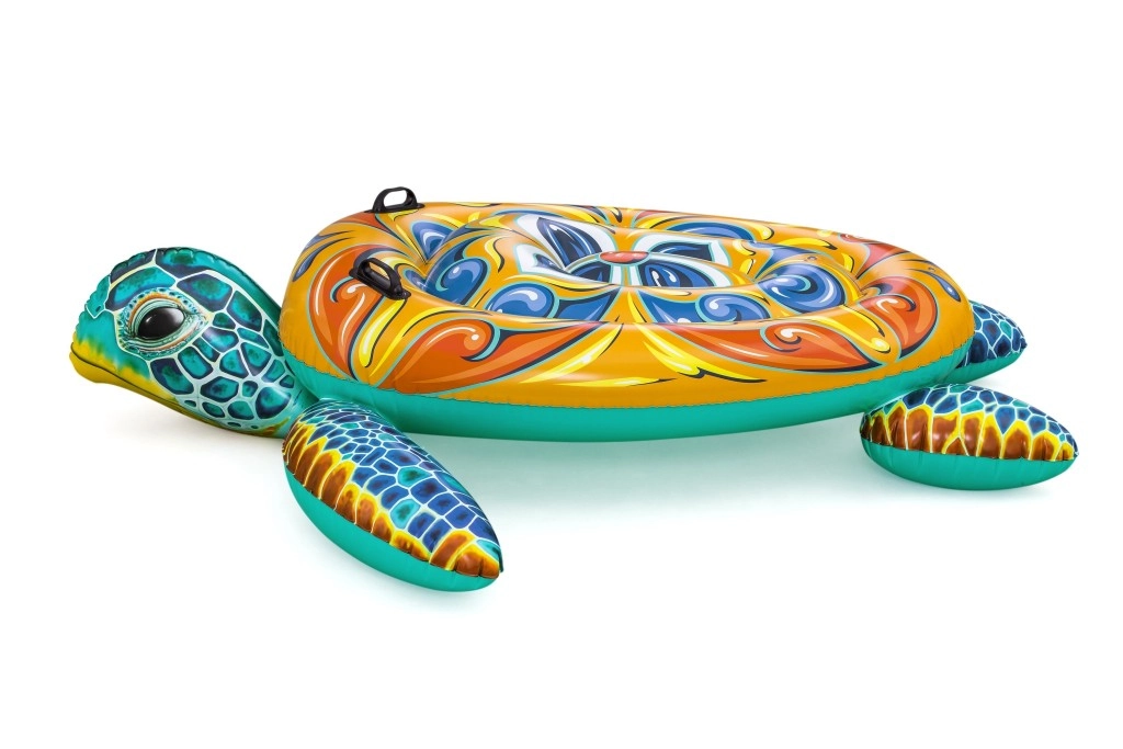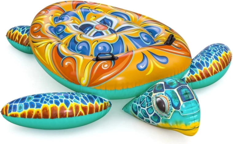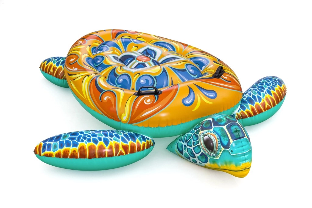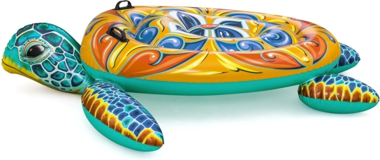 Țestoasa gonflabilă Bestway cu imprimeu accentuat Majolika este alegerea ideală pentru distracție pe apă. Datorită dimensiunilor generoase de 183 × 173 cm, oferă un spațiu confortabil pentru întins și plutit, în timp ce cele două mânere integrate asigură o prindere sigură și stabilitate la urcare și în timpul jocului.