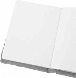 Coperta gri, plăcută la atingere, cu detalii brodate și urechiușe, adaugă farmec notițelor și protejează paginile interioare.