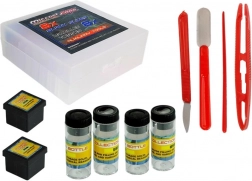 - Pensetă, cuțitaș, spatulă, bețișor, 7× lamelă portobiect, eprubete (în total 4 buc.), cutiuță, preparat gata