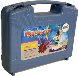 Acest set complet cu microscop introduce copiii, într-un mod ludic, în tainele biologiei și ale lumii microscopice. Datorită valizei compacte, micii cercetători pot explora oriunde – acasă, la școală sau în călătorii. Revolverul rotativ cu trei obiective, reglajul lin al clarității și iluminarea mesei portobiect facilitează observarea clară a probelor.