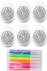 Set creativ pentru copii și adulți: 6 ouă din polistiren cu model de floare și carioci colorate pentru decorarea ușoară a ouălor de Paște. Ideal pentru creații acasă, la școală și la grădiniță. Ouăle au o suprafață netedă, se colorează excelent și ajută la dezvoltarea motricității fine, a creativității și a bucuriei de a crea. Perfecte ca decorațiuni de Paște și ca cadou.