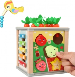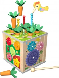 Această jucărie inovatoare îmbină distracția cu învățarea și dezvoltă abilitățile copilului datorită celor șase activități variate. Cubul din lemn este un instrument excelent pentru dezvoltarea abilităților motorii și a autonomiei.