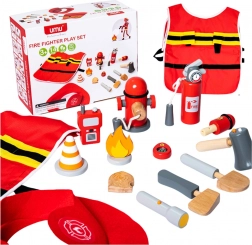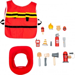 Elementele setului includ cască de pompier, costum, extinctor și alte accesorii distractive precum megafon și stație radio.