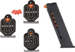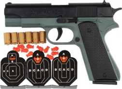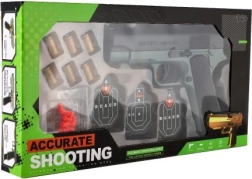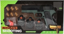 Înarmează-te cu acest pistol cu gloanțe din spumă și testează-ți abilitățile de tragere pe ținte. Setul include 6 gloanțe și 3 ținte pentru distracție maximă.