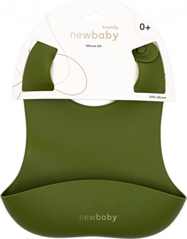 Bavetă din silicon New Baby în elegantul verde măslin combină stilul și funcționalitatea pentru utilizarea zilnică. Fabricat din material sigur, fără BPA.