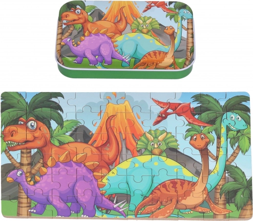 Descoperiți un puzzle distractiv cu 60 de piese ascuns într-o cutie de tablă elegantă, ideal pentru copii și adulți.