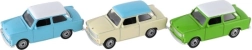 Modelul iconic Trabant de la Welly la scara 1:60 îi va încânta pe colecționarii mici și mari. Construcție metalică, uși deschizibile, interior detaliat și rulare liberă pentru o experiență excelentă de joacă și expunere. Lungime aprox. 7 cm, mix de culori, potrivit de la 3 ani.