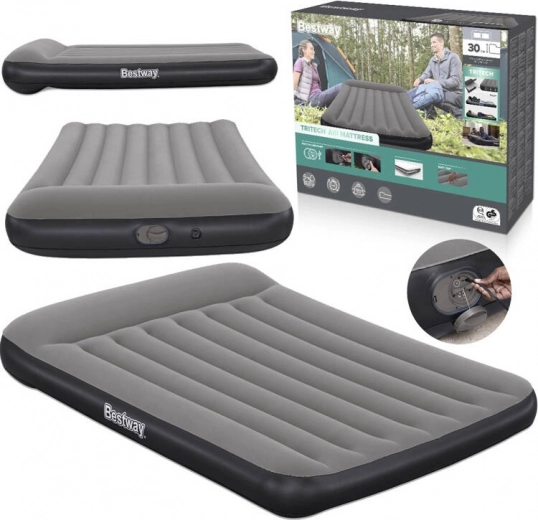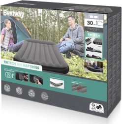 Patul gonflabil Bestway TRITECH este un partener de încredere pentru înnoptări acasă și în călătorii. Structura internă TRITECH este ranforsată pentru stabilitatea formei pe termen lung și este mai rezistentă la întindere decât PVC-ul obișnuit. Suprafața plăcută, tip catifea, sporește confortul și împiedică alunecarea lenjeriei.