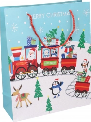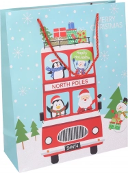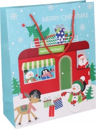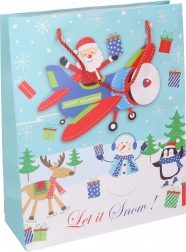 Pungă cadou stilată de Crăciun, mărime medie, pentru ambalarea ușoară și elegantă a cadourilor. Hârtie de calitate, mânere rezistente și patru modele festive care oferă cadourilor farmecul sărbătorilor.
