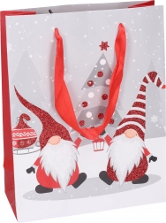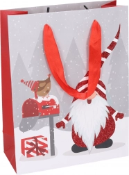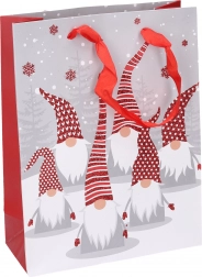 Pungă cadou stilată, mărimea S, cu motive de Crăciun, ideală pentru ambalarea elegantă a cadourilor mai mici. Execuție de calitate și mâner rezistent pentru transport ușor și sigur. Dimensiunile 17,5 × 23,5 × 8 cm sunt perfecte pentru cărți, cosmetice sau mici surprize.