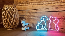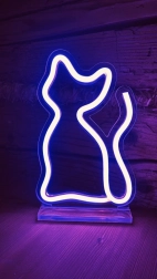 Lampa neon LED în formă de pisică aduce în spațiu o strălucire ambientală plăcută și un design modern. Suportul transparent și contururile clare creează un accent elegant care se potrivește în orice interior – de la camera copiilor până la birou sau cafenea.