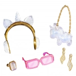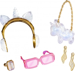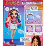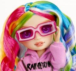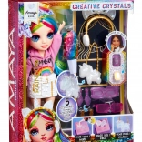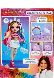 Amaya Raine din colecția Rainbow High Creative Crystals îmbină atelierul de creație cu lumea modei. Cu rășină transparentă și forme reutilizabile torni cu ușurință pandantive, ochelari și alte decorațiuni cu care completezi ținuta păpușii – și propriul tău stil. Fiecare creație este unică și aduce un strop de strălucire jocului.