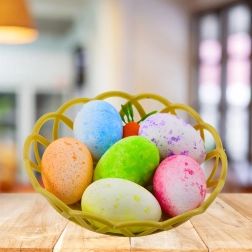 Decor ideal pentru masa de Paște sau ca dar pentru cei dragi. Puteți combina cu ușurință setul cu flori, crenguțe sau alte ornamente de Paște pentru a obține efectul dorit.