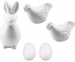 Ridicați decorațiunile de Paște la un nou nivel cu setul de Paște pentru vopsirea decorațiunilor de polistiren. Acest set creativ este excelent pentru copii și adulți care vor să adauge o notă personală decorațiunilor lor de sărbătoare. În set veți găsi un iepuraș de 10 cm înălțime, două găini de dimensiuni 7 x 5 cm și două ouă de 5 cm. Culorile bine asortate și pensula inclusă vă vor ușura vopsirea detaliilor.