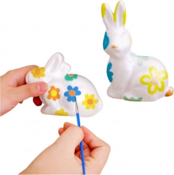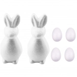 Acest set conține doi iepurași din polistiren și patru ouă din polistiren. Pachetul include, de asemenea, vopsele în patru culori intense și o pensulă care permite pictarea ușoară și precisă. Figurile din polistiren ușor sunt rezistente la deteriorare și absorb foarte bine culorile, astfel încât decorarea este o adevărată plăcere.