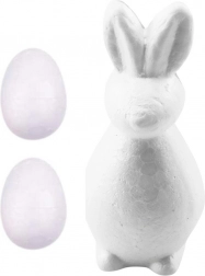Setul conține un iepure din polistiren și două ouă (mai mare și mai mic) și patru culori intense împreună cu o pensulă. Aceste figurine sunt realizate din polistiren ușor și durabil, ceea ce asigură decorarea ușoară și rezistența la deteriorare. După pictare, le poți folosi ca decorațiuni pascale pentru masă, coș sau în interior.
