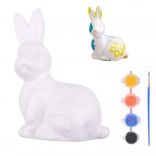În set veți găsi un iepuraș din polistiren cu dimensiunile de 14 x 9,5 cm. Setul include, de asemenea, patru culori în nuanțe intense și o pensulă care permit o pictare ușoară și precisă.