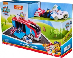 Setul include două mini mașini de curse ale eroilor Chase și Marshall și figurina Robo‑căţel cu un mic vehicul. Transportorul are roți care se rostogolesc, rampă pliabilă și spațiu de depozitare inteligent pentru o pregătire ușoară a echipei.