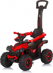Mașinuța fără pedale CHIPOLINO ATV Red este o alegere excelentă pentru primele aventuri pe două (patru) roți. În modul cu tijă de ghidare, părinții au control total, în timp ce copertina detașabilă protejează de soare. Odată ce copilul capătă încredere, mânerul și copertina pot fi îndepărtate cu ușurință, iar micul pilot poate merge singur.
