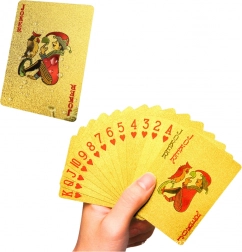 Cărți de joc din plastic aurii aduc eleganță și stil fiecărui joc de cărți. Ideal pentru poker, makao, pan sau mie, asigură o experiență de joc de calitate datorită durabilității și longevității lor.