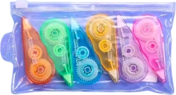 Fiecare dintre cele șase benzi corectoare are un capac colorat, ceea ce facilitează organizarea și oferă un aspect estetic. Mecanismul practic de aplicare permite o corecție precisă și rapidă fără dungi și fără a îndoi hârtia. Datorită formulei durabile a benzii, corecturile sunt gata pentru scriere imediată.