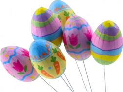 Ouăle sunt dotate cu sârme, care permit plasarea ușoară în diverse decorațiuni, precum aranjamente florale sau coroane.