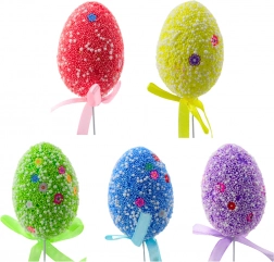 Fiecare ou este decorat cu mărgele de spumă și modele delicate pentru un aspect unic.
