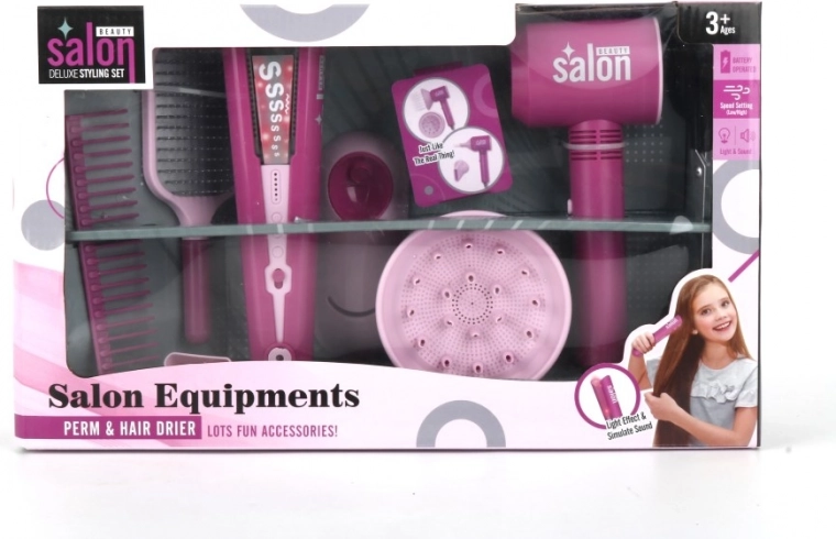 Acest uscător de păr pentru copii simulează un uscător de păr real, permițând copiilor să se simtă ca într-un adevărat salon de coafură.