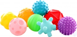 Setul conține 20 de jucării diverse care dezvoltă abilitățile de prindere, vizuale și tactile ale copiilor de la 6 luni.