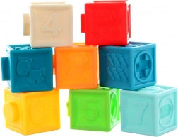 Cuburile conțin cifre și animale reliefate, ideale pentru jocuri educative și dezvoltarea recunoașterii numerelor.