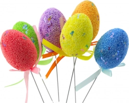Datorită sârmei elastice, ouăle se plasează ușor în aranjamente florale, ghivece, coșuri din nuiele sau coroane de Paște. Materialul ușor din polistiren își păstrează forma și este practic pentru utilizări repetate. Setul conține 6 ouă în culori diferite, astfel încât creați rapid o decorațiune armonioasă și atrăgătoare.