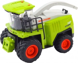 Modelul are heder detașabil, tub de descărcare funcțional, melc de evacuare mobil și cârlig frontal, astfel încât copiii pot imita realist lucrările agricole. Efectele luminoase și sonore integrate amplifică impresia unui utilaj real.
