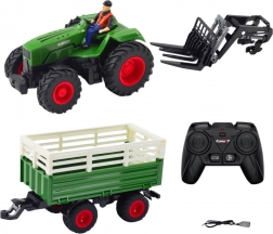 - Tractor RC cu remorcă și furci, telecomandă 2.4 GHz, acumulator 3.7 V 500 mAh, cablu USB, manual, ambalaj original