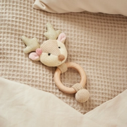 Această jucărie motrică stilată, cu inel din lemn și căprioară textilă, este ideală pentru primele luni de viață. Combinația de lemn natural și material catifelat susține percepția senzorială, motricitatea fină și coordonarea mână–ochi. Designul elegant în tonuri nisipii îi va încânta atât pe copii, cât și pe părinți.