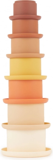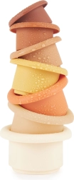 Setul de cănițe din silicon suprapozabile Bieco, în tonuri pământii plăcute, oferă nenumărate posibilități de joacă acasă și afară. Copiii pot construi turnuri, pot turna apă sau se pot juca în nisip – materialul sigur și rezistent face față aventurilor zilnice și se curăță ușor cu apă și săpun delicat.