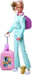Păpușa Steffi Love Călătoarea este pregătită pentru orice aventură. Poartă un trening turcoaz confortabil, adidași albi și ochelari, pentru a fi mereu șic în călătorii. Accesorii precum trolerul roz cu imprimeu, perna de voiaj, rucsăcelul și cățelușul drăgălaș transformă joaca într-o expediție de călătorie distractivă și realistă.